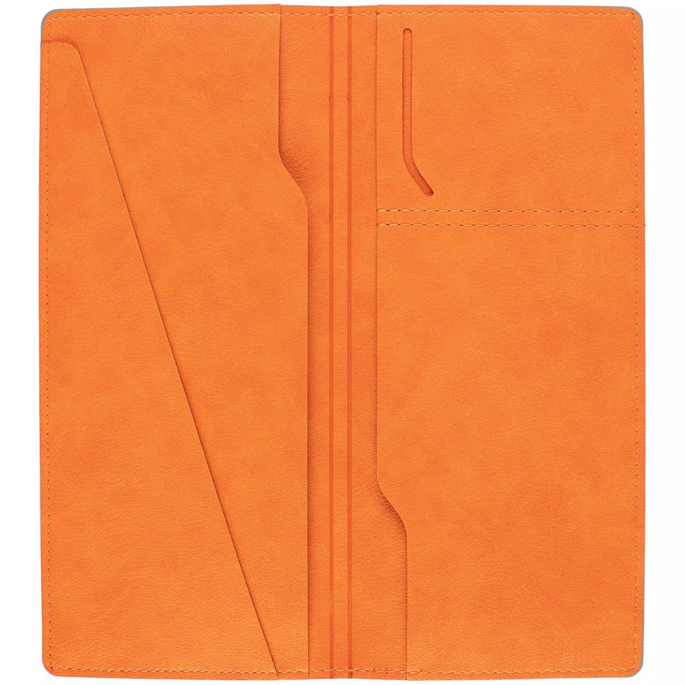 Органайзер выполнен из материала Petrus, оранжевый ОО, дополнен окрашенным срезом края серого цвета.