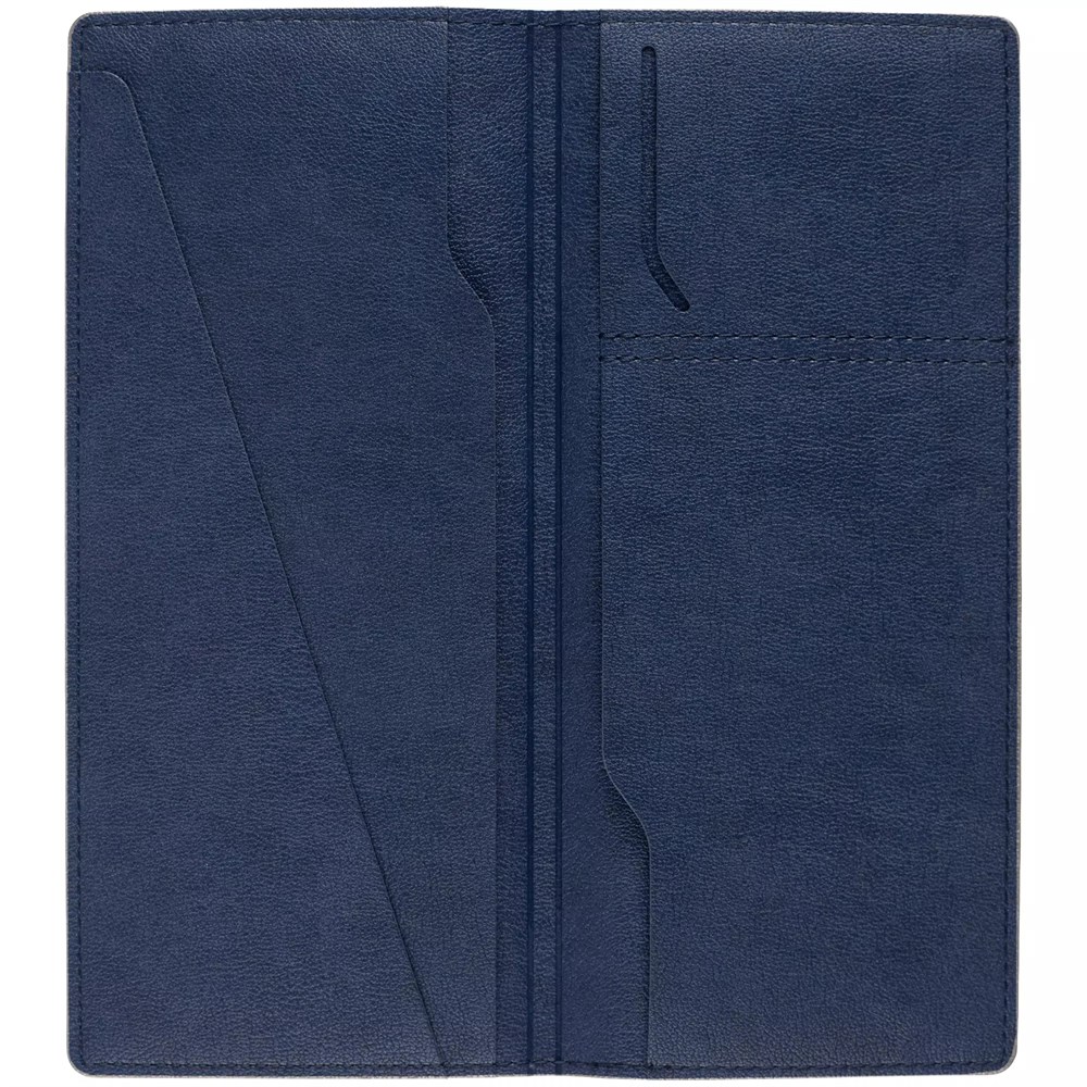 Органайзер выполнен из материала Petrus, синий НН, дополнен окрашенным срезом края серого цвета.