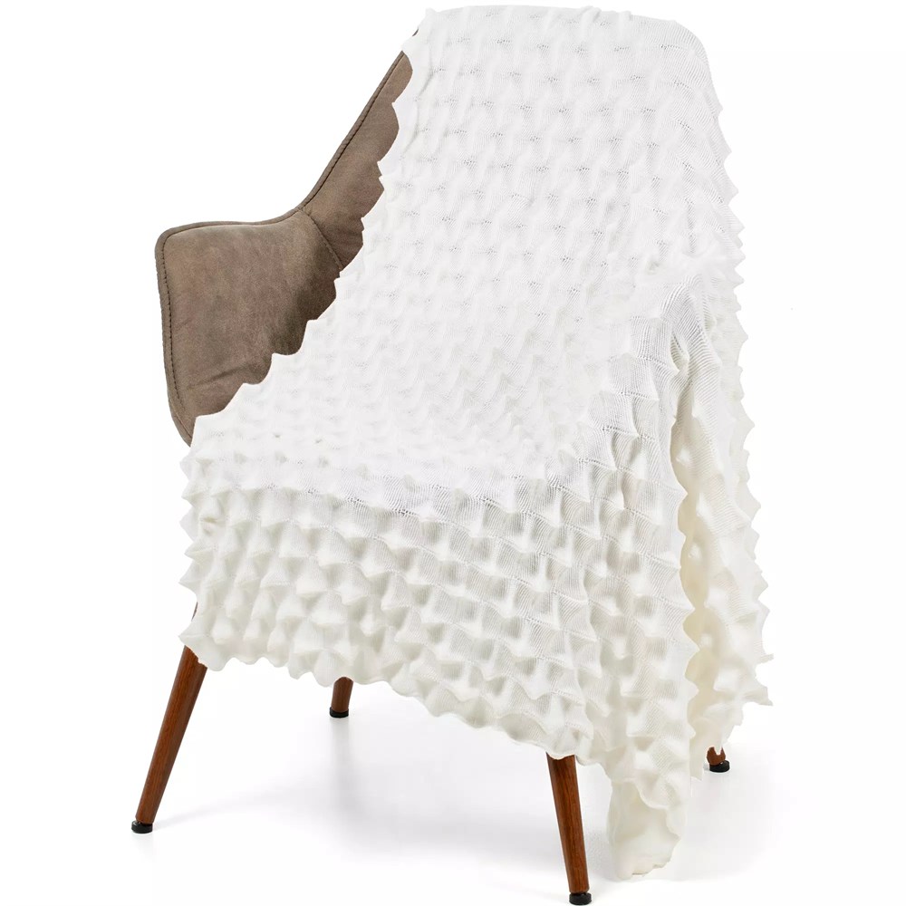 Объемный, но одновременно воздушный плед нежного молочно-белого цвета Metamorpho — словно наделенная магическими свойствами чешуя небывалого животного, которой хочется обернуться от забот и суеты. Плед окутает теплом, а его необычная фактура напомнит о величии и красоте заснеженных горных вершин. Так создается атмосфера настоящей зимней сказки!