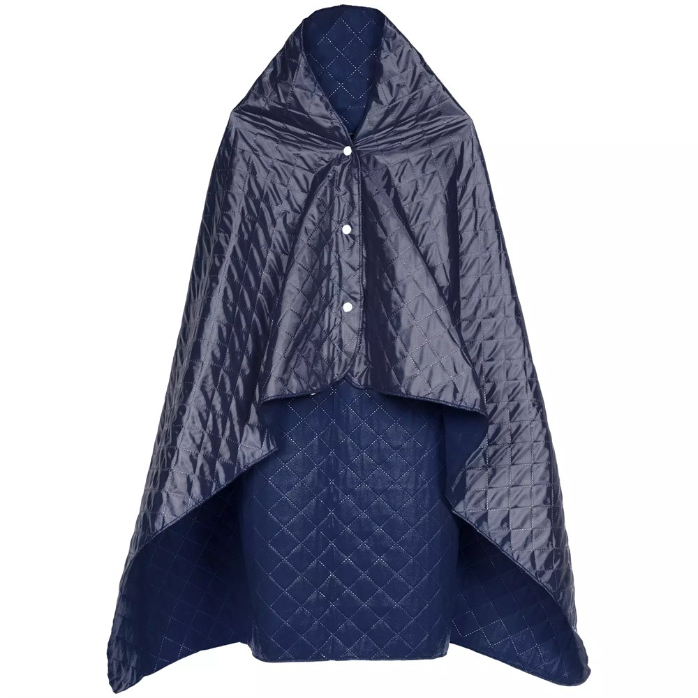 Кнопки по длинной стороне превращают обычный плед в пончо — он не даст замерзнуть, если погода испортится, и не слетит с плеч на ветру.