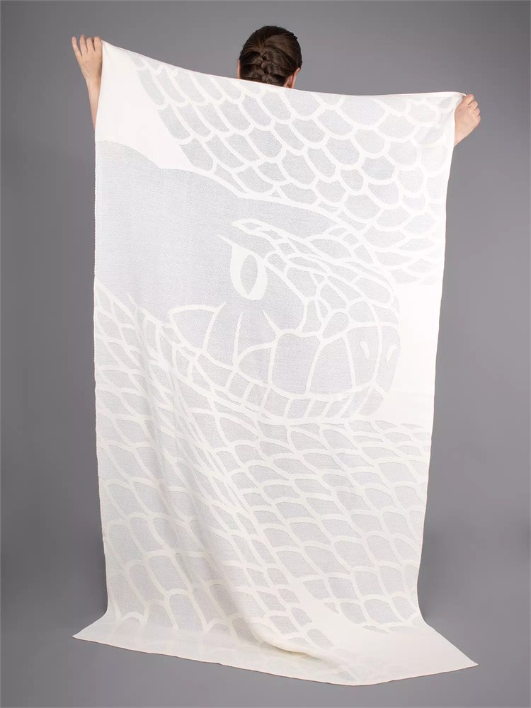 Плед Serpentica посвящен главной героине 2025 года — мудрой Змее, чья красота и гибкость тонко переданы в дизайне. В восточной культуре змея ассоциируется с долголетием, бессмертием и исцелением, а в мифологии разных народов часто выступает в роли помощника и защитника.