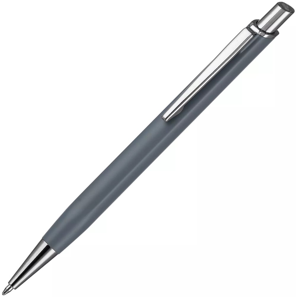 Металлическая ручка с матовым корпусом и хромированными деталями.