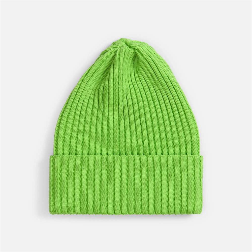 Однослойная шапка фактурной вязки с двойным отворотом.