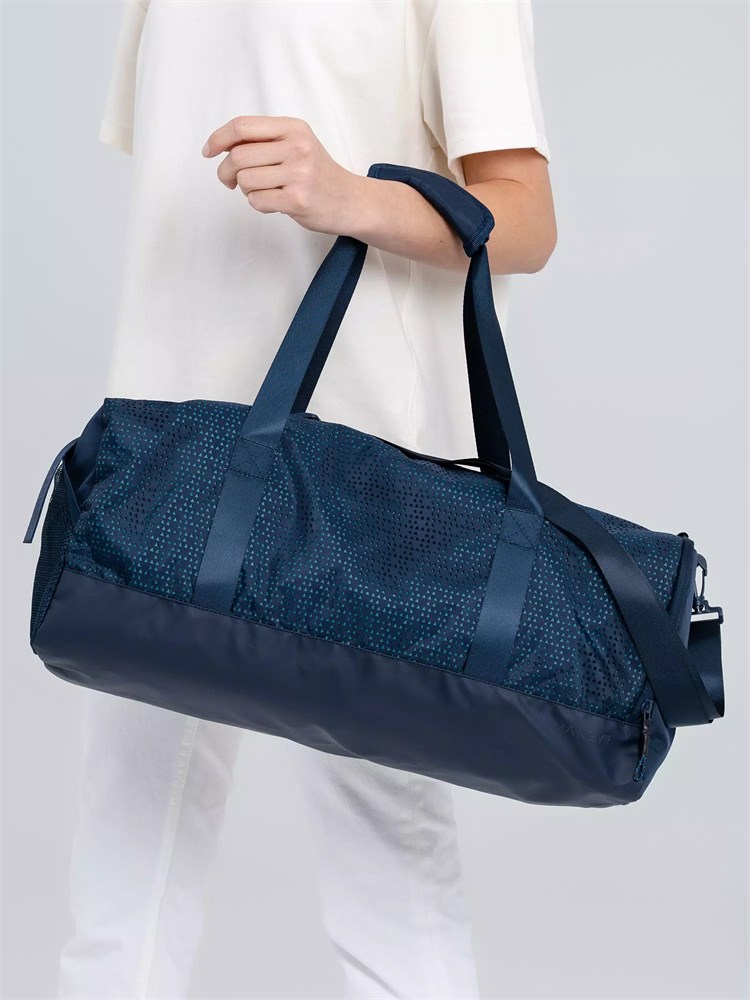 Цвет Outer Space лег в основу коллекции сумок Triangel, позволяя создать модное монохромное сочетание с изделиями Manevr темно-синего цвета. Изделия изготовлены из шелковистого полиэстера, в отделке использована лазерная перфорация паттерна.