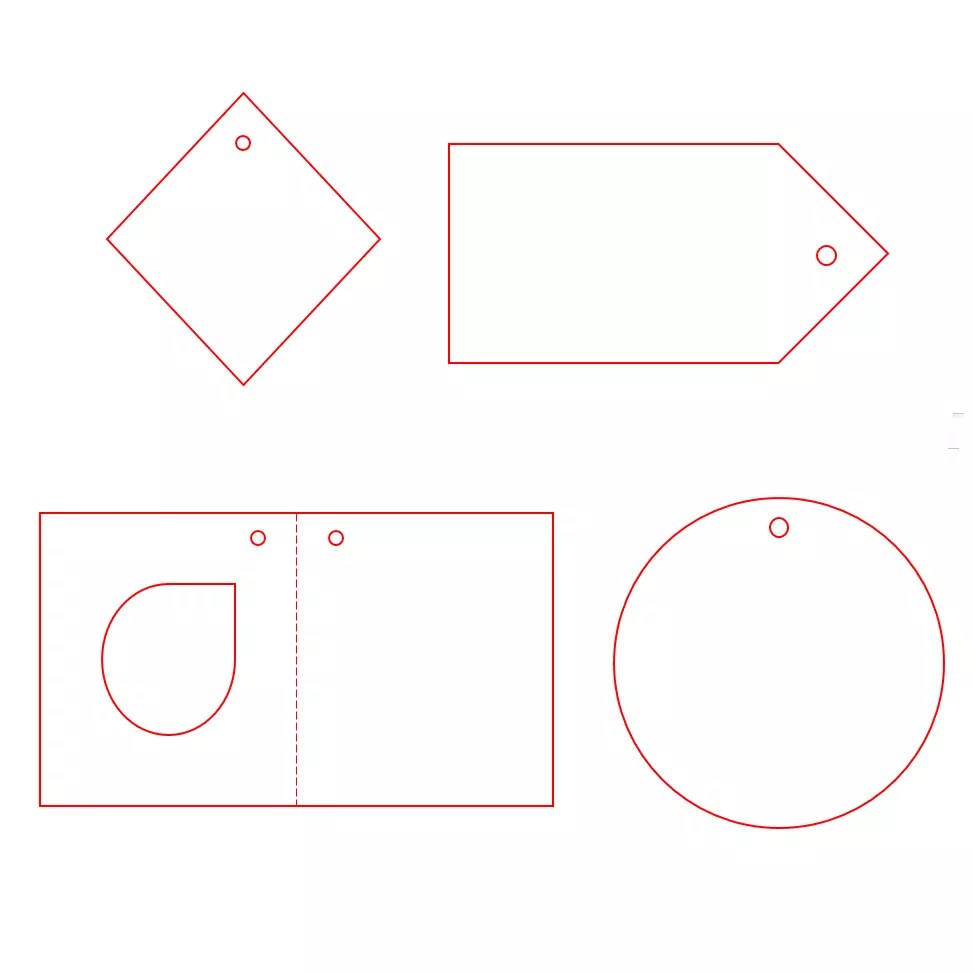 - Чтобы получить открытку или этикетку-книжку, можно сделать биговку и сложить изделие пополам — укажите это в макете