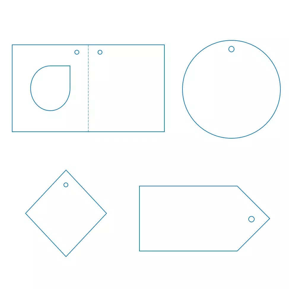 - Для удобства крепления можно добавить круглые или овальные отверстия внутри этикетки. Минимальный диаметр отверстия 4 мм